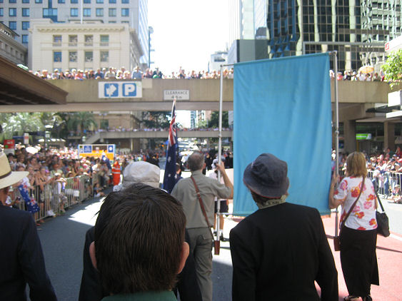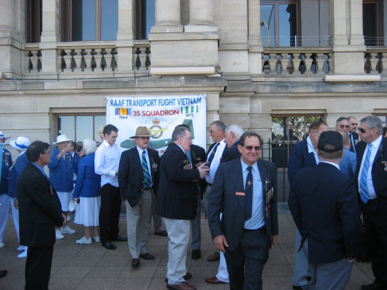 Post WWII Veterans of 35 Squadron RAAF assemble in William Street beside the Casino