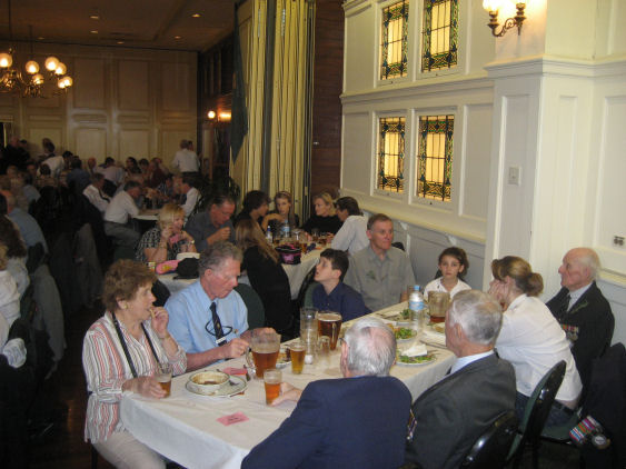 Two tables of 460 Squadron veterans and families at the Irish Club after the march