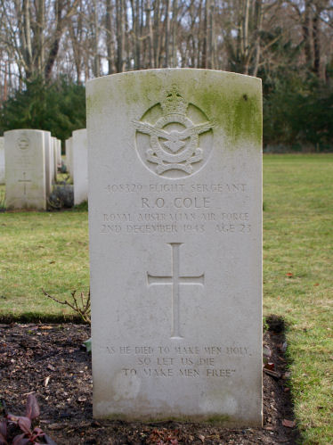 Row 7B with the headstone for Flight Sergeant Ray Osmond Cole at the far right