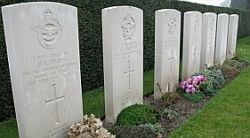 It was established post war that the aircraft crashed at Vieux Mesnil in France at 0230 hours on 11 April 1944. Vieux Mesnil is near Maubeuge situated on the River Sambre close to the Belgium border. All the crew were killed and they are buried in the Maubeuge-Centre Cemetery, Nord, France. Maubeuge is a large town in the department of the Nord. Maubeuge-Centre Cemetery stands inside the Communal Cemetery of Maubeuge on the route de Mons (N2).