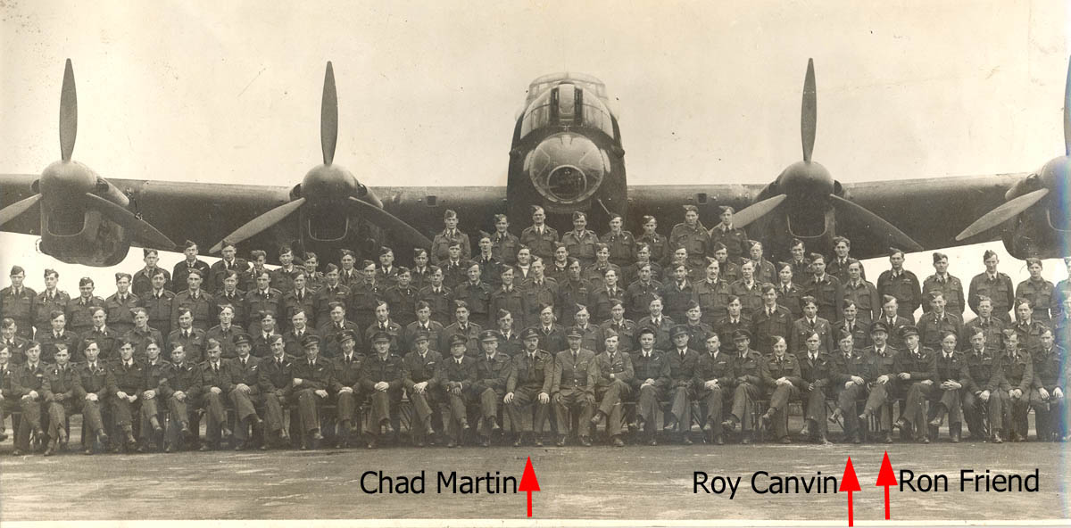 Just after Chad Martin arrived on the Squadron as our new Commanding Officer, Roy Canvin's pilot Alex Wales was transferred, I think, to PFF to fly Mosquitoes so Roy became Chad's navigator. Roy had completed many more Ops than I had but because Chad as Squadron Commander flew less frequently, I was rapidly catching up on him so that we both completed our tour of Ops about the same time. I was overjoyed when Roy, earlier, was justly promoted to the rank of Pilot Officer and joined me in the Officers' Mess. We had so many very happy times together.