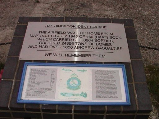 In July of 2003 my wife Josie and I went to Binbrook. I noticed on your site that Herb and Mary Oliver had visited there in June 1998, just wanted to let you all know out there, that the runway is still intact. We saw the memorial that has been erected on it in Memory of the crews, kept neat and tidy ,although everywhere seemed rather neglected but it wasn't hard to imagine what the 460 went through. The hangers still being used by Industry, we couldn't get to where the Quarters and Conning tower are because it is fenced off.