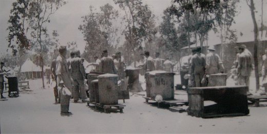 While the enemy were metaphorically knocking at Australia's front door, construction crews under the directive of Captain Antovini were bulldozing down trees, levelling roads and building sites, commencing October 12th, 1942. By November 11th, with roofs only half completed on the machine shops, another crew began installing the machinery, and on the 13th the first jobs were being turned out.