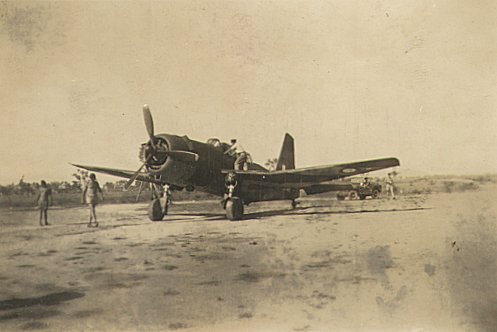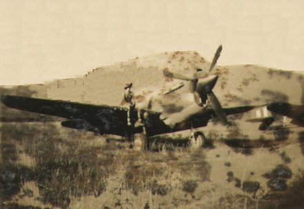 | Kittyhawk at Ross River airfield (Photo touched up to remove some insect damage) |