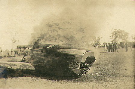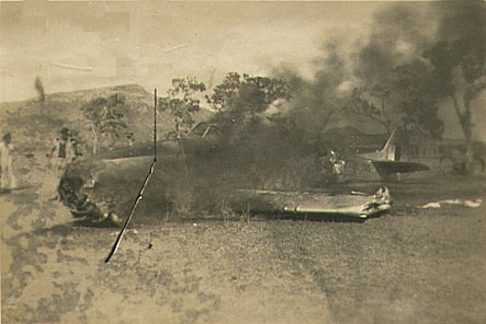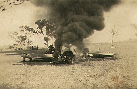 | Mustang A68-565 caught fire after crashing at Ross River airfield on 7 August 1945 | |