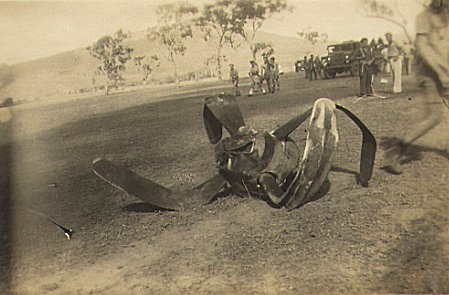 | Remains of Mustang A68-565 after crashing at Ross River airfield on 7 August 1945 | |