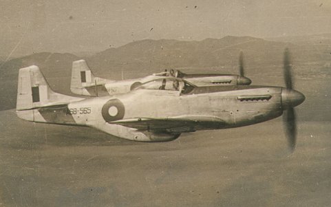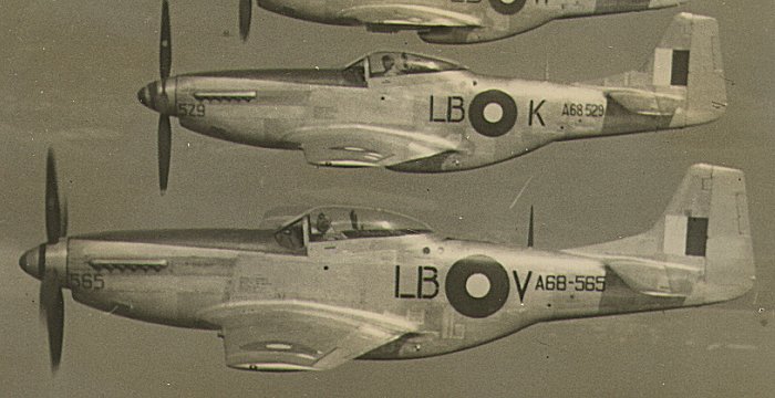 | Mustangs of 84 Squadron - Mustang A68-565 of Squadron Leader Cox in the foreground and A68-529 | |