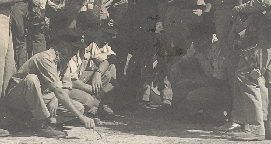 | Closeup of the picture above - Members of 86 Squadron RAAF - can anyone help me with names? LAC Gordon Joseph Walker (146044) from Warragul, Victoria is located at the far left in the back row. | |