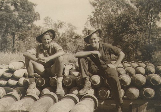 | Two friends at the bomb dump at Ross River airfield. Can anyone tell me who they are? | |