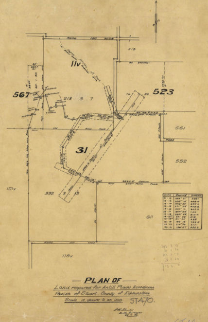Land for the Antil Plains Airfield was acquired during WWII under the National Security (General) Regulations. Note that Portions 542 and 543 on the above plan were used as AIF Camps during WWII. Mr. George Arthur Ellis was the owner of Portions 567, 309V, 542, 519, 504, 505, and 506 and Mr. Richard Hogan was the owner of Portions 523, 611, 31 and 11V.