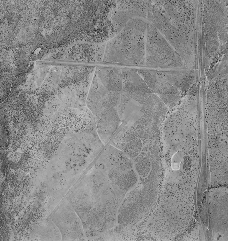 "The 144º landing strip has been cleared, grubbed and consolidated to natural surface. Clearing width 350' by length 5300'. Runway is in use. The runway parallel to the road and railway has been roughly graded and rolled, but has now been abandoned..."