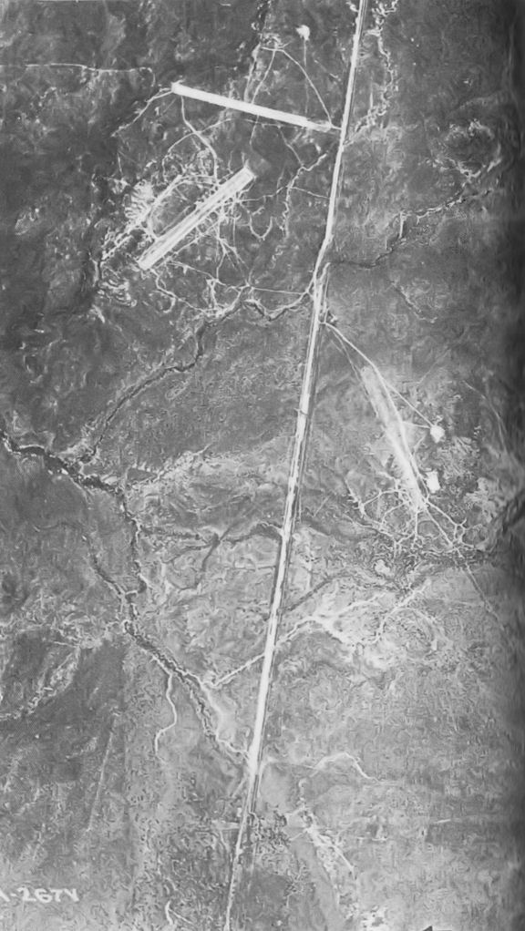 "... Four strips cleared and grubbed. NE-SW strip in occupation, other strips levelled, too dusty for use. Initial requirement is a skin of gravel."