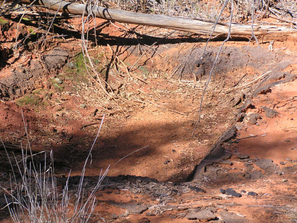 Remains of one of the bitumen baths dug in the ground at Charleville Airfield