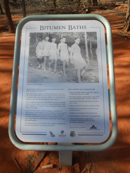 The above history board indicates that the enlisted men of the 43rd Bomb Group dug holes in the ground and lined them with bitumen so that they could be used for a relaxing bath. One of the tour guides in Charleville tells a slightly different version of what they were used for. Their story states that there were a series of around five bitumen baths, and possibly more. The shallow bitumen baths were designed to fill one to the other, so that a strong chemical solution could be added for delousing purposes that required an approximately 40 second submersion for removing lice, ticks, etc and as a medical preventative.
