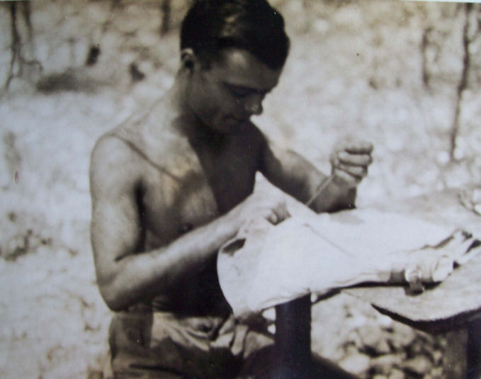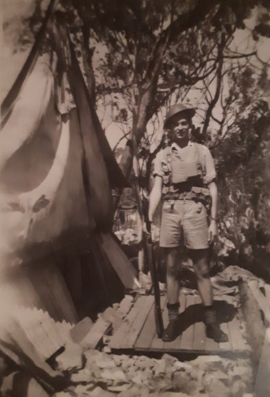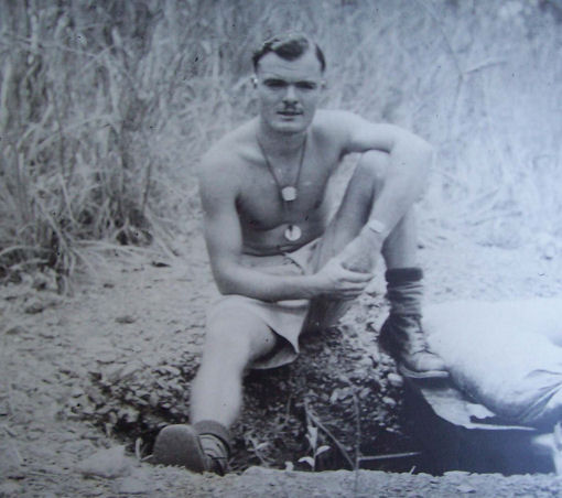 LAC Ronald Charles Holmes (115770) sitting above his foxhole