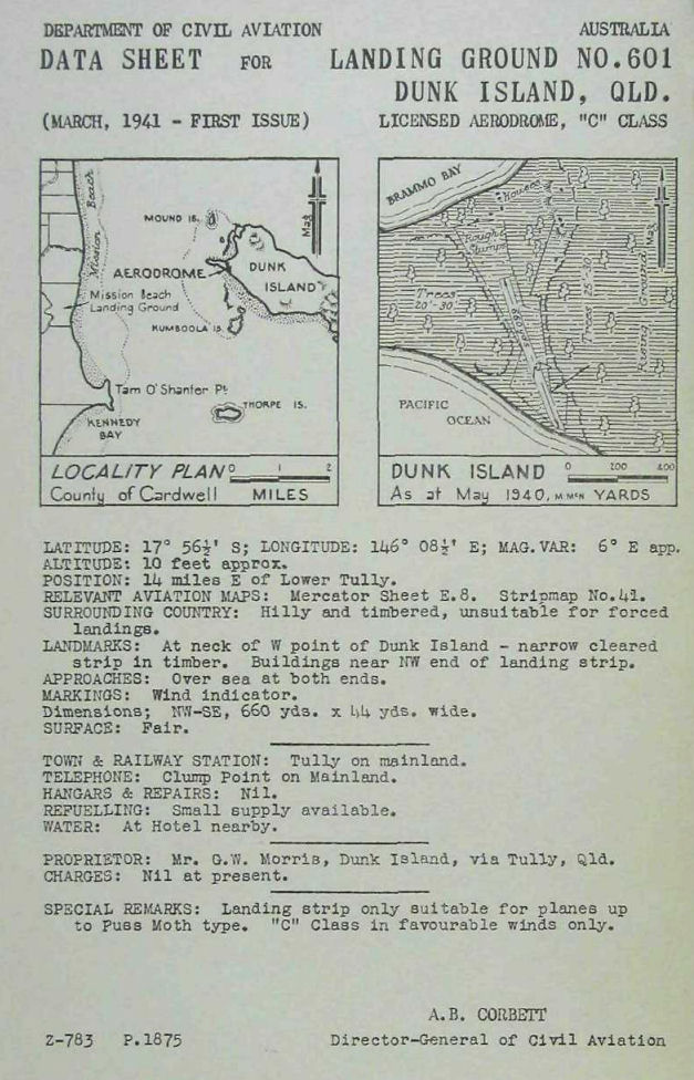 On 26 June 1945, W/O McMaster in A17-483 flew from Garbutt Airfield to Dunk Island and return.