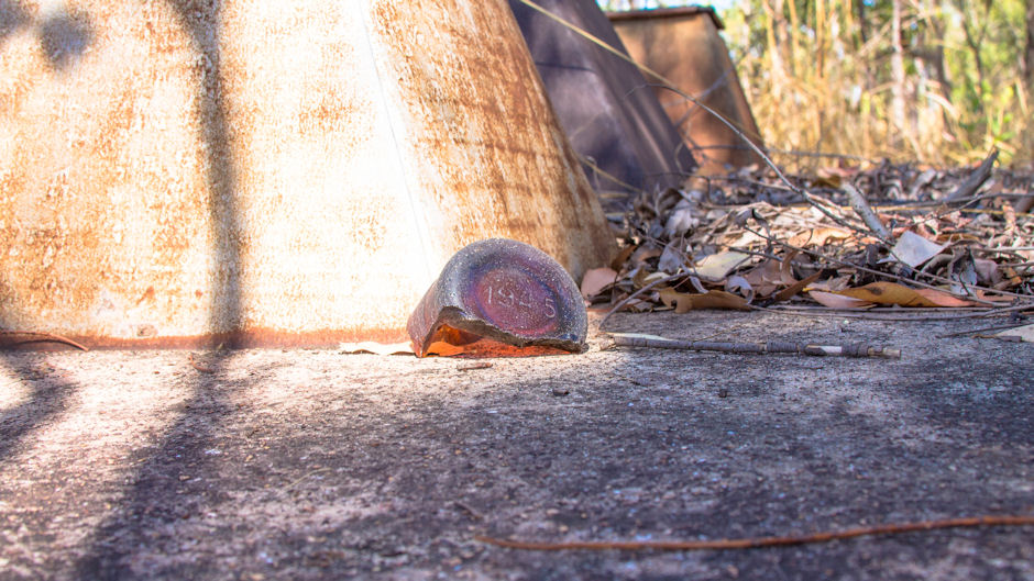 Base of a 1945 Beer bottle on the Toilet Block slab in adjacent SRD Camp