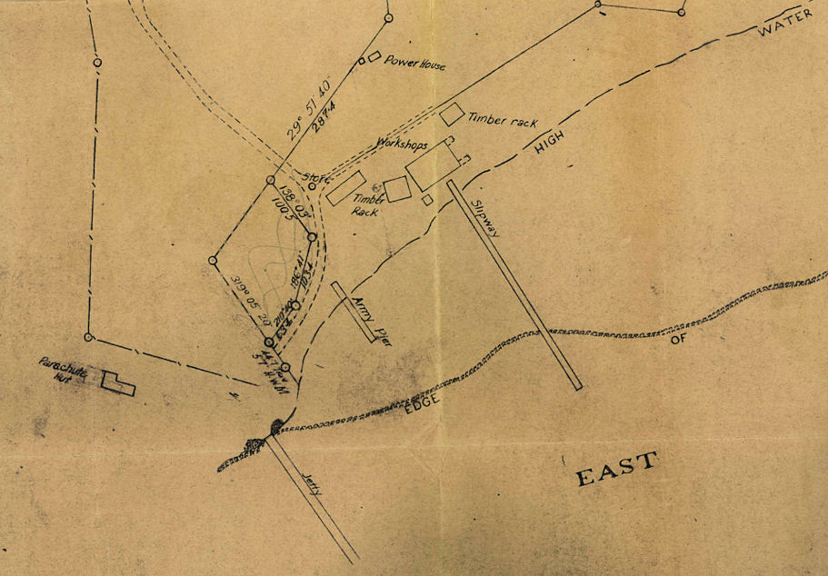 Note there is a parachute hut at the East Arm Flying Boat Base.