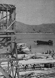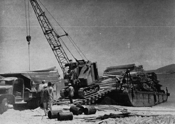 The Seabees constructed a 1,000 man camp at Wallaby Point on the Island. Concrete flying boat ramps to the ocean were constructed along with a large tarmac parking area for up to 12 flying boats. Moorings for 18 flying boats were provided in Challenger Bay and work was commenced on 3 nose hangers. The Seabees obtained coral aggregate from coral reefs at low tide to manufacture concrete.