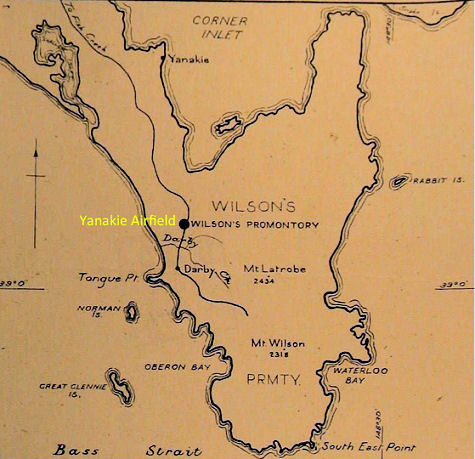 The Minister for Civil Aviation approved the extension and improvement to Yanakie Airfield, near Darby River Road at Wilsons Promontory in about September 1939, at an estimated cost of £2,000. The improvements were urgently required by the RAAF.