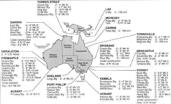 Australian mainland with all static defences being disbanded except those in Sydney and