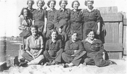Dalmar Taylor (nee Harris) was one of 13 other members of the Australian Women's Army Service (AWAS) who were attached to the Searchlight Unit at Nudgee Beach. They arrived at Nudgee Beach in June 1943 after completing their searchlight training at Wagga Wagga. They were the first AWAS attached to searchlight units north of the Brisbane River. The male soldiers had been posted to the forward lines in New Guinea. A few male soldiers remained who acted as Orderly Room staff, a cook and two "B" Class soldiers who carried out general duties. The names of some of the remaining male soldiers were as follows:-