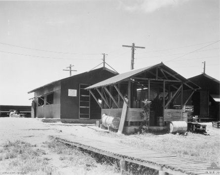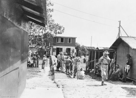 The camp site comprised five high set timber houses that had been left vacant by Italian farmers who had been interned by the Australian Government. One house on the Esplanade was used as the Headquarters for the unit. The two adjoining houses were used for the Officer's Mess and Officer's quarters and the other for the AWAS Mess and Kitchen.