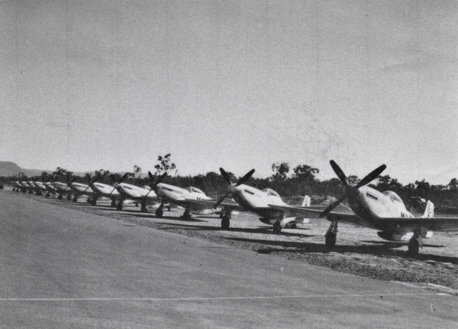 86 Squadron Mustang lined up on the Bohle Airfield