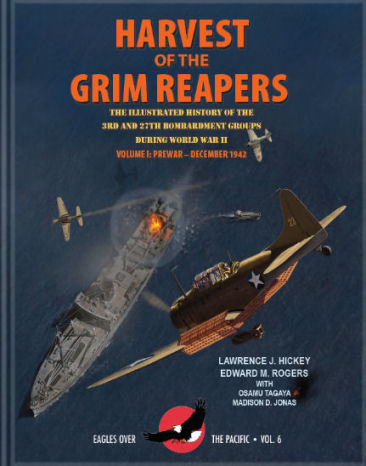 Pacific.” — Bill Stone, Stone & Stone With roots dating back to the air war over France in World War I, the 3rd Bomb Group would pioneer the low-level air attack strategy used in the Pacific Theater in World War II. In 1939, the unit was split up: half the personnel would make up the new 27th Bomb Group that would help defend the Philippines, while the rest would remain in the U.S. for additional training. The two units would reunite in Australia in March 1942, after two dozen 27th pilots escaped the maelstrom of the Japanese invasion of the Philippines. Bolstered by three score new pilots, and later, RAAF co-pilots and gunners, their first major combat operation was the Royce Raid, a surprise attack against the Japanese in the heart of the Philippine Islands. Forced to adapt to an unpredictable supply line, the 3rd Bomb Group flew A-24 dive-bombers, A-20 strafer-bombers they modified themselves and B-25 medium bombers acquired from the Dutch Air Force. Major Paul I. “Pappy” Gunn, a future legend of the 3rd Bomb Group, was instrumental in the development of the A-20 strafer model that changed the way air units attacked the Japanese. Throughout 1942, they bombed Japanese bases at Lae, Salamaua and Buna, often without available fighter cover. Pursued by the Tainan Kokutai, a Japanese fighter unit then at its peak prowess, airmen who survived after their planes were shot down over enemy territory had to cross the untamed jungles of New Guinea while dodging Japanese troops to reach Allied territory. Their stories are told to the full extent of what information is available. Written by the author of Warpath Across the Pacific, working in tandem with distinguished historian Edward Rogers, the story of the 27th and 3rd Bomb Group in 1942 is a truly unparalleled tale of bravery, innovation and hardship. Accompanying the narrative are more than 700 photos, four comprehensive appendices, two spectacular color paintings and 20 detailed color profiles by aviation artist Jack Fellows. Harvest of the Grim Reapers, Vol. I serves as an important record of the early air war in the Pacific Theater. |