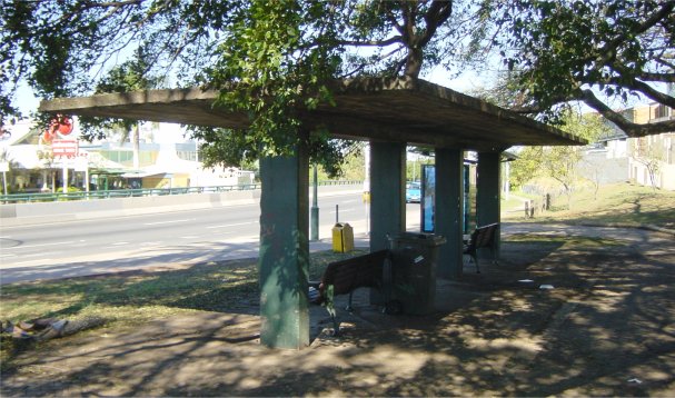 The Brisbane City Council adopted an innovative design for its public air raid shelters such that after the war, the brick walls around them could be removed leaving a cantilevered roof concrete structure ideal for bus shelters or general shade.