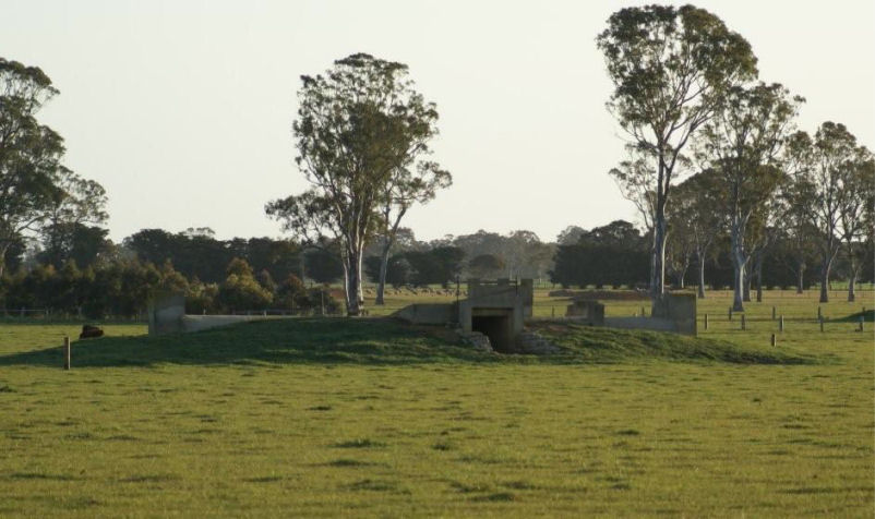 Bairnsdale northern Ammunition Bunker beside the dirt roadway near Bairnsdale Airfield