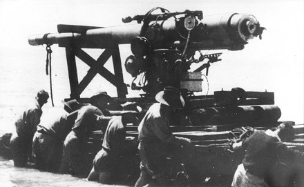 A 1943 view of one of the two 4-inch ex-US Navy guns which comprised