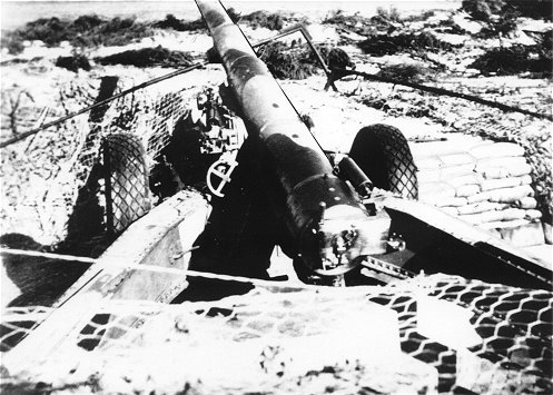 Army 155mm gun of "J" (Challenger) Battery in 1943, surrounded
