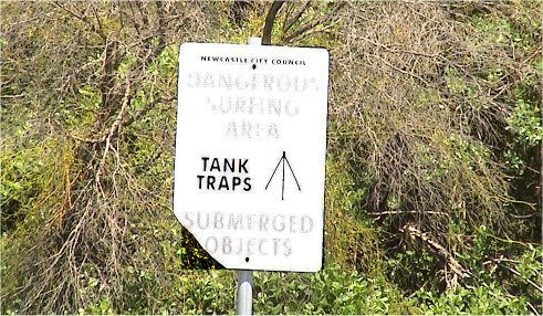 Newcastle City Council - Dangerous Surfing Area - Tank Traps - Submerged Objects.
