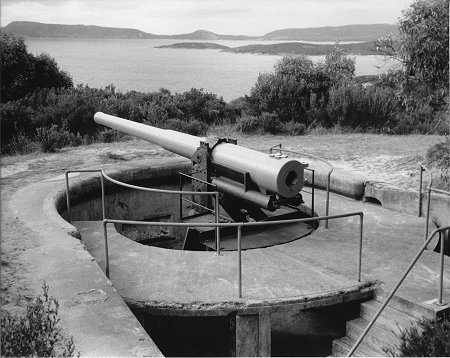 The Mk VII guns were emplaced in 1945, at which time the QFC guns were removed and scrapped. The Mk VII guns had been at the 6-in Leighton Battery (1942-45) previous to that, they were at the Fort Arthur Head Battery (1906 - 1943). The above Mk VII gun featured without a shield is not the original barrel which was scrapped in the 1960's. Roger Martin, who managed the restoration of the fortress in the 1980's, acquired the barrel depicted from Bermuda in the West Indies.