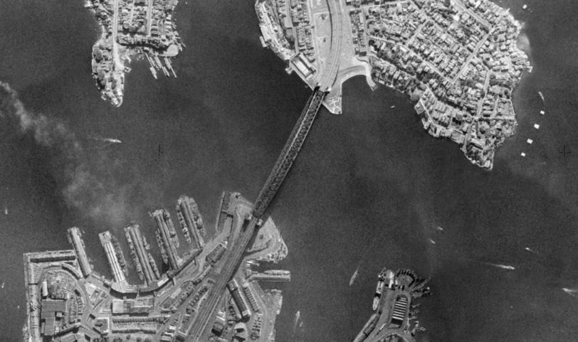 The pylons of the Sydney Harbour Bridge were inspected in 1938 to find the best locations to install machine guns. No. 5 Section, 1st Anti-aircraft Battery (Lewis Gun Section), carried out training in all four pylons from 13 to 15 November 1939.