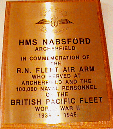 In February 1945, the Royal Navy moved its Transportable Aircraft Maintenance Yard number 1, known as TAMY 1, to Archerfield. The Royal Navy base was known as HMS Nabsford and a plaque (Figure 5) commemorating it and the British personnel who served in the Pacific theatre can be viewed in the old administration building along with plaques from the RAAF (Figure 6) and the US 5th Air Force. (Figure 7)