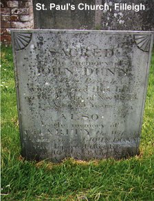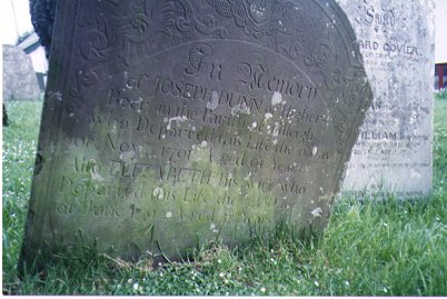 "In Memory of Joseph Dunn of Higher Beer in the Parish of Filleigh, who Departed this Life the 6th Day of Nov, 1791 aged 61 years. Also Elizabeth his wife who Departed this Life the 25th Day of June 1792, aged 55 years".