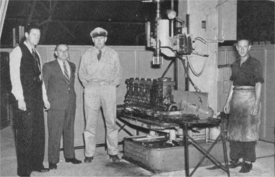 Standing to the left of the honing machine are:-