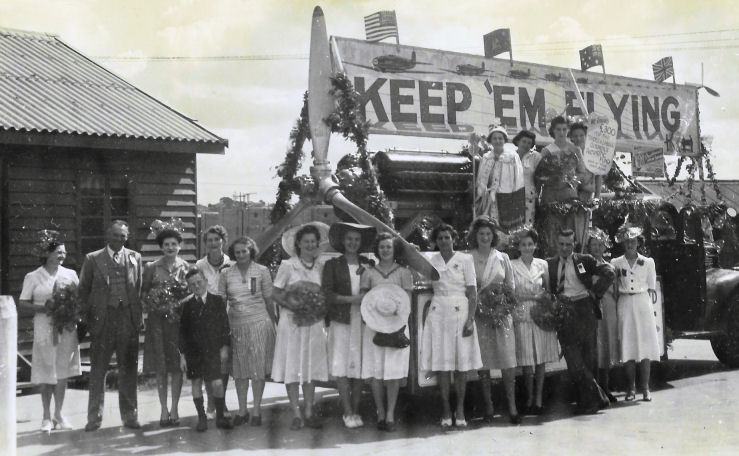 Joyce Clements was one of the ladies who worked in the Allison Engine Overhaul Assembly Plant at Albion. Joyce's daughter Vicki McTaggart sent me the photograph below which shows her mother's work mates from the Allison Plant at Albion proudly standing with their "Keep 'Em Flying" May Day float in 1944.