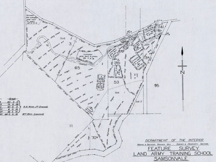The Australian Women's Land Army established an AWLA Training Farm at Samsonvale in September 1942 under the control of the Director General of Manpower (Qld) under the authority of the Commonwealth Government. Mr. Richard Winn of Glencoe donated over 250 acres of his land on the eastern side of "Glencoe" including the dairy to create the AWLA Training Farm. The Land Army relocated from the Women's Auxiliary Transport Service's original Long Pocket Training Farm to their new Training Farm at Samsonvale on 30 September 1942. The Women's Auxiliary Transport Service or WATS was the forerunner of the AWLA. This centre at Samsonvale became the State Headquarters for the AWLA in Queensland.