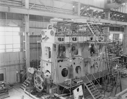 A ship engine being constructed at Port Melbourne