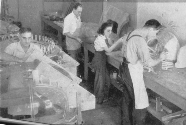 Their initial staff of ten soon increased to nine men and sixteen women. They were all apprentices. They learnt their new skills very swiftly. They made models out of clay which were then used to make Plaster of Paris moulds. They would then heat the sheet of plexiglass to around 250 degrees Fahrenheit and stretch it over the mould. The plexiglass is imported from the USA in sheets that average 4ft x 3 ft.