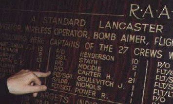 "G" for George has been progressively restored on the inside over recent years, and John was able to assist with the proper location of fittings, etc. in the aircraft. John's name is shown on an Honour Board of "G" for George pilots. This board is on display in front of the aircraft.
