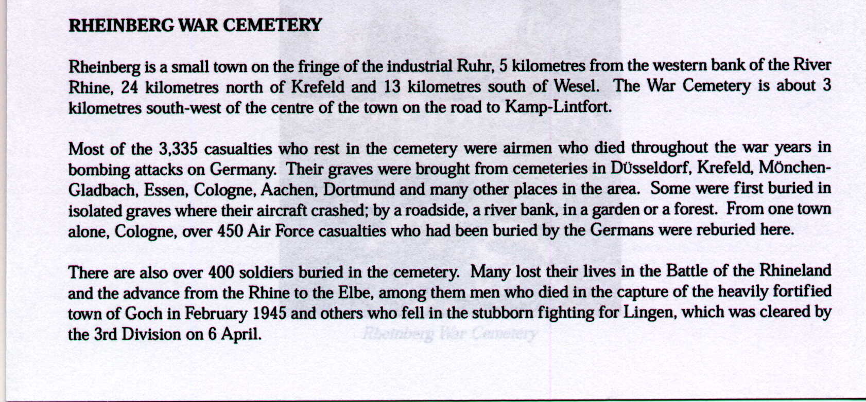 Burial. 24/6/44. Plot.I. Row.8. Graves. 98-103. (old RC cemetery)Target. Wuppertal.