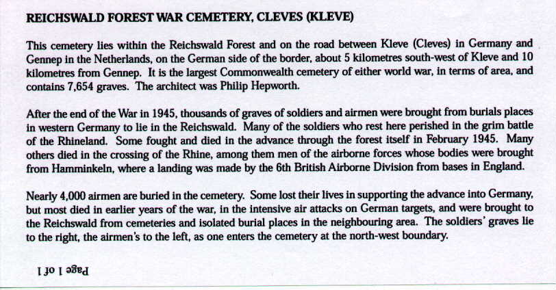 The Foundation Uden War Cemeteries. A chap by the name of Jan. Heeson. He worked for the local council and was entrusted with the cemeteries. The poor bugger got shit from the locals for arranging German burials. later dug-up and moved to another town . Another story was the Germans were very upset that the towns folk of Vught.( a few miles away ) Used to place flowers on Aircrews graves every day. So they moved them to Uden. It was amazing, the Dutch as soon as they found a grave anywhere as long as it was Allied they brought fresh flowers every day.