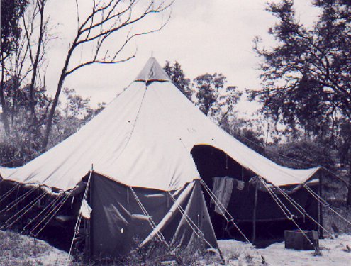 | "Home away from Home" at Charters Towers for the 3rd Bomb Group. It was their first experience of overseas billeting in war time. Was a bit primitive and served mostly as just a place to get their sack-time and very little else. As you will see later, things did improve. | |
