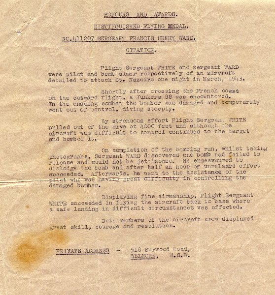 Peter, I have just completed a short account of the life of my late father-in-law Flight/Sgt Frank Ward DFM who flew with 460 Sqdrn and was lost over Germany in 1943.