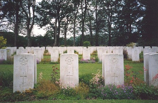 POSTCRIPT Further information regarding the fate of ED711 has come to light in March 2005 from a Heinz Bardua via Peter Cunliffe who is doing research into the Plzen raid. Heinz Bardua lives in Stuttgart and was sixteen years old in 1943 at the time of the raid. He was training as an aircrew volunteer on gliders and on the night of the raid was on “fire watch” in Stuttgart. He remembers clearly seeing a Lancaster bomber appear from the south at 0.55 hours on 17 April and receive direct hits from light anti-aircraft fire. The aircraft (ED711) was set on fire and jettisoned its bombs as an emergency procedure. The bombs exploded in the Upper Rosenberg Street area (not an intended target), killing one person and injuring 58. As the aircraft descended in flames, one of the ED711 gunners (Heinz thinks it was the mid-upper turret) continued to fire at a flak battery near where he was positioned. The bomber flew right over the building he was in and exploded on impact in the wooded Heukopf above the Feuerbach Valley. He went to the crash site in the forest the next day and saw the partly burnt bodies of the eight crewmembers. A photograph of the crash site is held by an archive in Stuttgart. Another bomber (Halifax DT773) was also hit later that night over Stuttgart and crashed at the Max-Eyth-See a drained lake near Stuttgart Hofen. Peter Cunliffe thinks that Herr Badua’s report is correct as he was actually there watching the raid on a clear moonlit night and, furthermore, his other work stands up to scrutiny. The recording of Boebligen as the crash site appears to have originated from a report to the Air Ministry London submitted in 1947 by No.3 Missing Research and Enquiry Unit that includes a statement from a Cemetery Report made by Friedhofmaster Otto Lohall in 1943 in which he says “the bodies were brought in for burial by the Luftwaffe authorities from Boebligen on the 18th April 1943, and was stated to him that the aircraft had crashed in or around Boebligen”. On a visit to Boebligen by No.3 MREU no trace could be found of wreckage etc., hence the actual crash point was stated to be “unknown”. Bruce Hall |