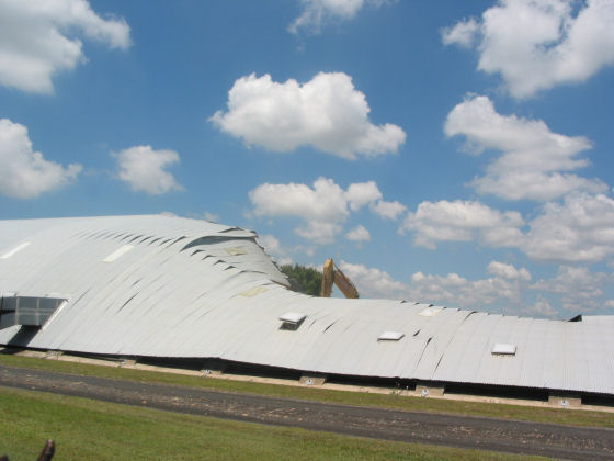 There were two underground rooms or bunkers, one at each end of this igloo. On 11 November 2008 Peter Aust told me that he was talking to one of the demolition guys who said they had found the bunker from the western end of the igloo. It was about 3 to 4 m long, just under a metre wide and the bottom was around 1.3 m below the floor height, with a stairway. It was mainly filled in with dirt, also probably had some concrete that CSIRO had put in as part of their crane support. The demolishers broke it up like the rest of the floor. At that stage they had not started on the office area slab, where the other bunker was located. Peter Aust told the demolisher that there should be another bunker in line with the first one.